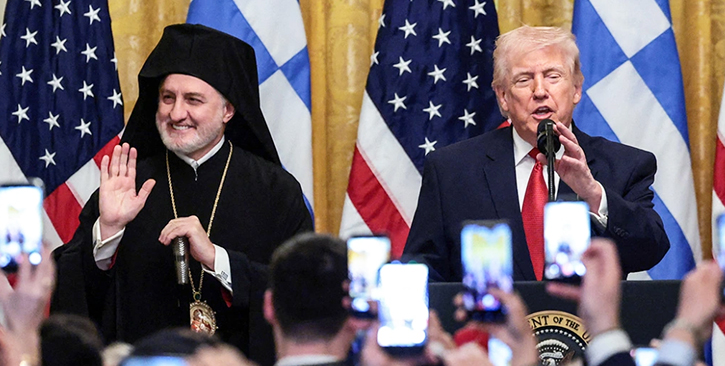 Η αρχιεπισκοπική ξεφτίλα... Ο 'Ελπις, στην ''ειδική ορθόδοξη προσευχή'' του, παρακάλεσε τον Θεό και τον άγιο Βασίλειο, να βοηθήσουν τον Τραμπ να ''υποτάξει όλα τα έθνη''! Συγκεκριμένα, ζήτησε από τα Θεία να δώσουν στον πρόεδρο «το όπλο της αλήθειας», να τον «προστατεύουν σε καιρό πολέμου όπως τώρα», να τον ενδυναμώσουν, να του οπλίσουν το δεξί χέρι, να κάνουν την προεδρία του δυνατή και, τελικά, να τον βοηθήσουν «να υποτάξει όλα τα έθνη που επιζητούν τον πόλεμο»!!!