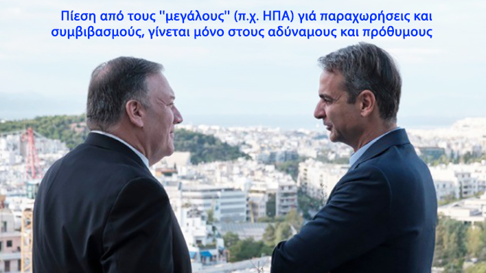Πίεση από τους ''μεγάλους'' (π.χ. ΗΠΑ) γιά παραχωρήσεις και συμβιβασμούς, γίνεται μόνο στους αδύναμους και πρόθυμους. Και η Τουρκία δεν είναι η αδύναμη, ούτε η πρόθυμη.
