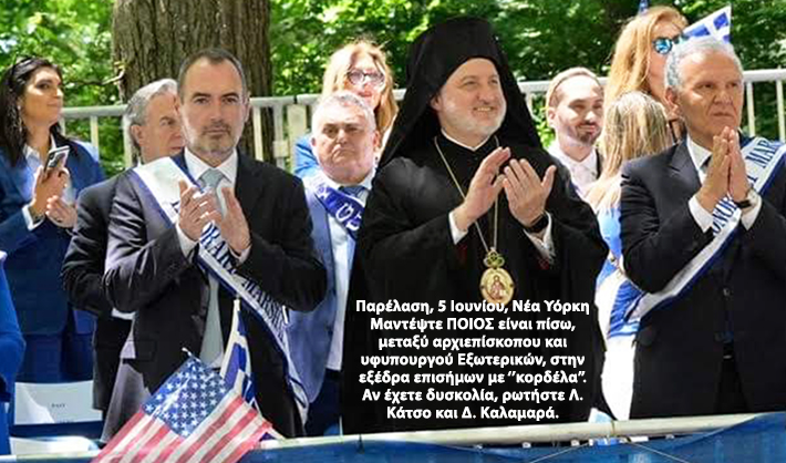 Το ''αφηνιασμένο ψώνιο, εγωμανής'', Ελπιδοφόρος, φρόντισε να διαλύσει την -γιά δεκαετίες- διοργανώτρια Ομοσπονδία Ελληνικών Σωματείων Μείζονος Νέας Υόρκης και άρπαξε την παρέλαση, γιά 25 η Μαρτίου, που εφέτος γίνεται ετεροχρονισμένα στις 5 Ιουνίου '22, με ''πρόεδρο Επιτροπής'' τον γραφικό και ανιστόρητο ''λεφτά'' Γιάννη Κατσιματίδη (αντιπρόεδρο αρχιεπισκοπικού Συμβούλιου), διορισμένο από τον Ελπιδοφόρο!!!